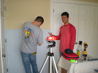 So we started working on the Nursery the first weekend in December and it is now almost done. I'm just waiting on the curtains and a skinny bookcase that my dad is making. Here are a few pictures of the progress. Reuben came and helped us put up bead board and chair railing and Mike and his dad painted the walls. It was so great to have the help! I'm going to keep you in suspense for the final picture until the room is complete.